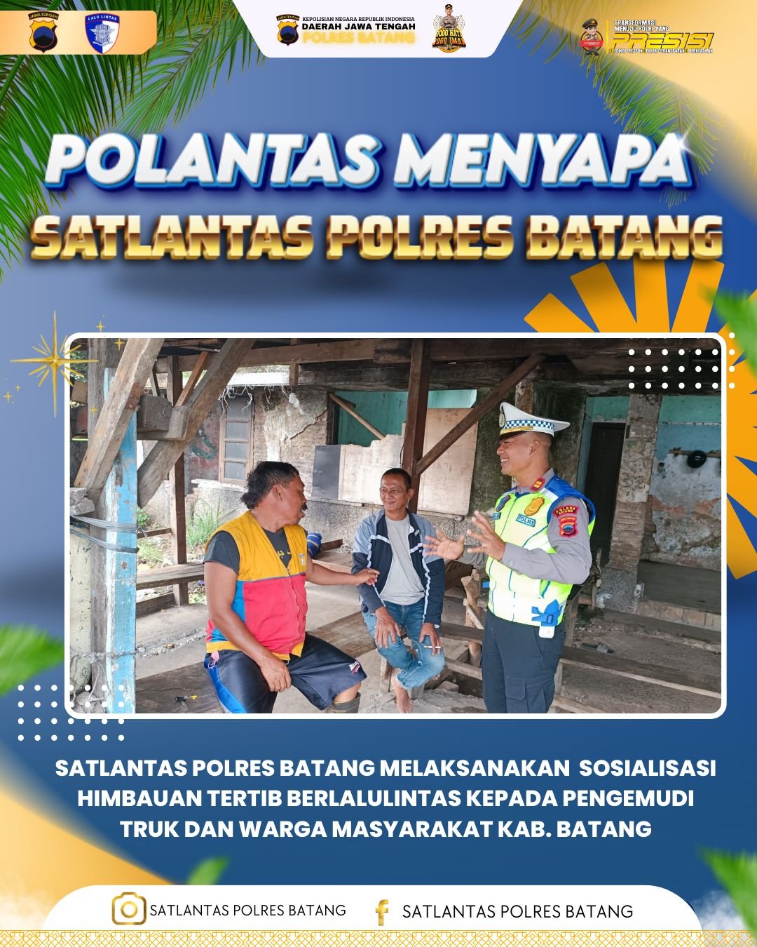 Batang — Upaya menciptakan budaya tertib berkendara terus dilakukan Satlantas Polres Batang melalui kegiatan sosialisasi langsung di tengah masyarakat. Kali…