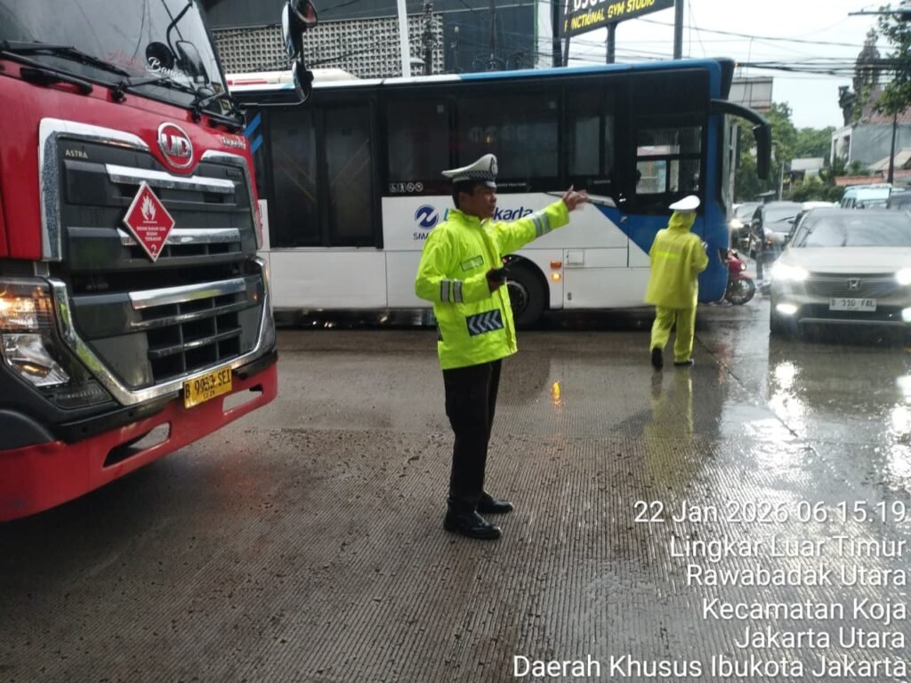 Sementara itu, BMKG dalam peringatan dini Kamis (22/1/2026) menyebutkan bahwa wilayah DKI Jakarta, Banten, Jawa Barat, serta sejumlah daerah lain di Indonesia masih berpotensi mengalami hujan sedang hingga lebat disertai petir dan angin kencang, yang dapat memicu banjir dan genangan. Masyarakat diimbau meningkatkan kewaspadaan, khususnya di wilayah rawan banjir dan bantaran sungai. Polri mengimbau masyarakat agar tidak memaksakan melintas di jalur tergenang, selalu mematuhi arahan petugas di lapangan, serta mengutamakan keselamatan diri dan keluarga. Dalam kondisi darurat, masyarakat dapat menghubungi layanan call center 110. Polri menegaskan komitmennya untuk terus hadir sebagai pelindung, pengayom, dan pelayan masyarakat, sekaligus memastikan setiap perkembangan situasi segera diketahui masyarakat.