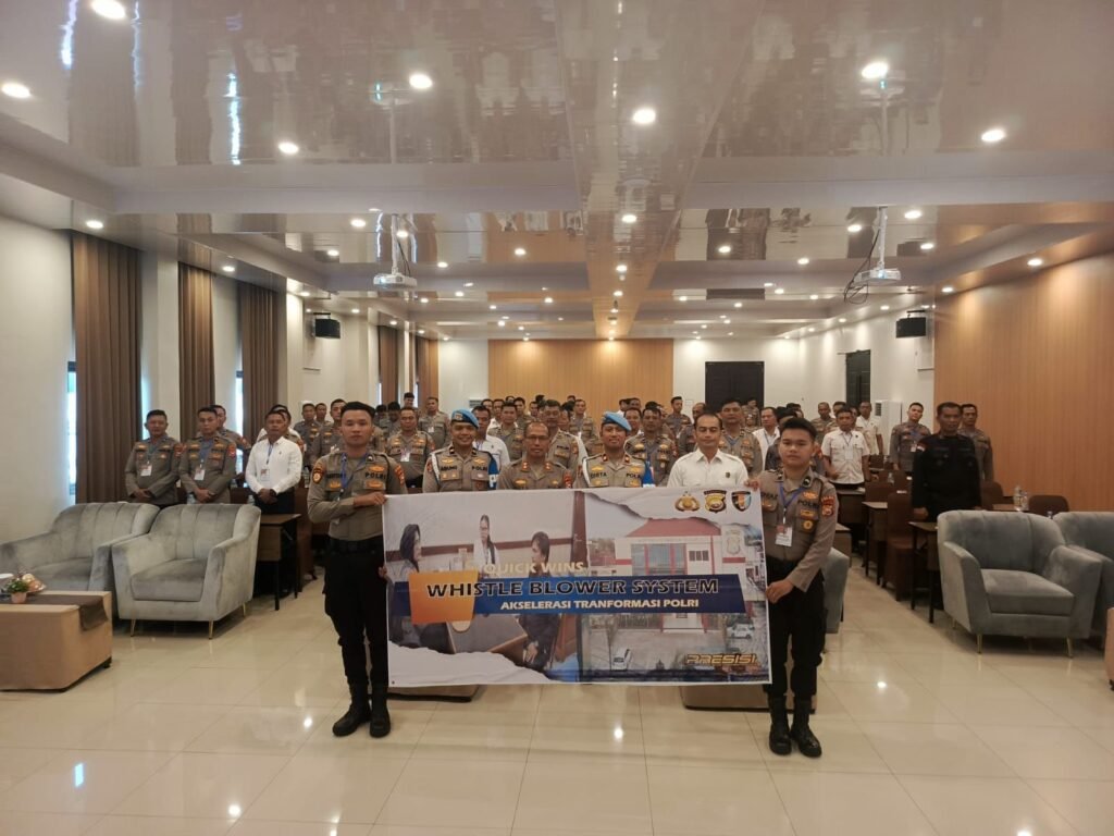 TBNews Bengkulu – Bidpropam Polda Bengkulu melaksanakan kegiatan sosialisasi Whistle Blower System dan SP4N LAPOR di Aula Hotel Willo Kota Bengkulu Kegiatan ini dipimpin oleh Kompol Dista Nali Putra, S.I.K. Plh. Kasubbidprovos Bidpropam di dampingin Ipda Agung Samudra, S.H. Panit Hartib Subbidprovos Bidpropam dan bersama 3 personel bidpropam polda bengkulu. Kamis (30/10/2025)