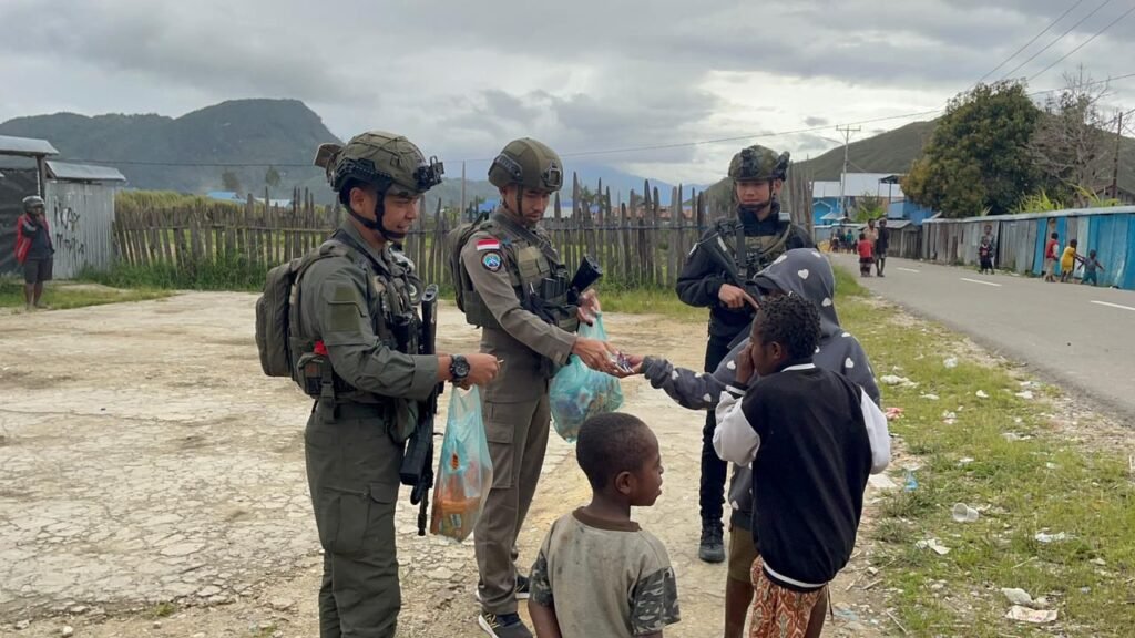 Paniai, Papua Tengah — Dalam upaya mempererat hubungan antara aparat keamanan dan masyarakat, personel Satgas Operasi Damai Cartenz Sektor Paniai menggelar kegiatan humanis berbagi kebahagiaan dan keceriaan bersama warga serta anak-anak di Jalan Modern, Enarotali, Kabupaten Paniai, pada Kamis (9/10/2025) sore.