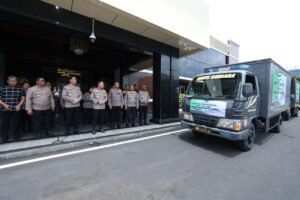 Pelepasan bantuan dipimpin langsung Wakapolda Jatim Brigjen Pol Dr. Pasma Royce, S.I.K., M.H., bersama Pejabat Utama Polda Jatim di depan Gedung Tribrata Mapolda Jatim, Jumat (21/11/2025).